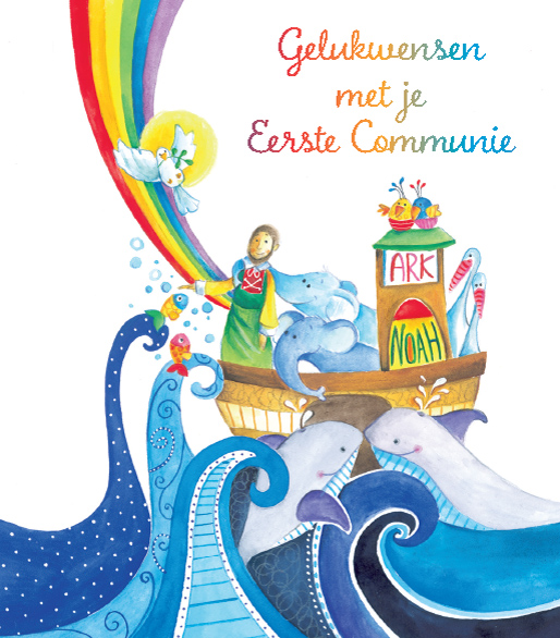 Nom: DUBBELKAART "GELUKWENSEN MET JE EERSTE COMMUNIE"/OMSLAG