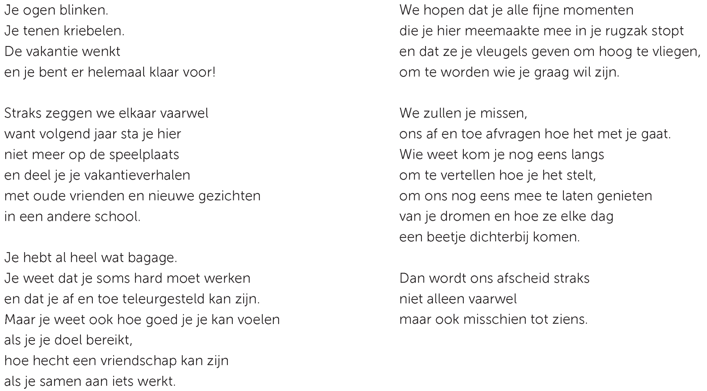 Een wenskaart met een beklijvende afscheidstekst van Ruth Uytterhoeven!