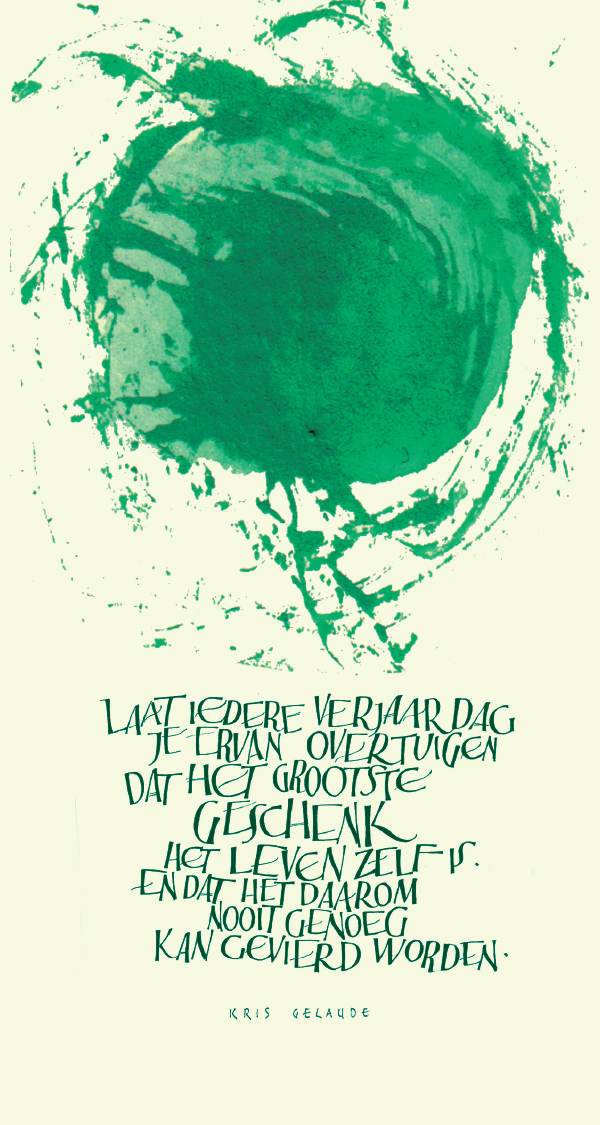 Nom: KALLIGRAFIE "LAAT IEDERE VERJ.DAG..." + LUXE ENVELOPPE