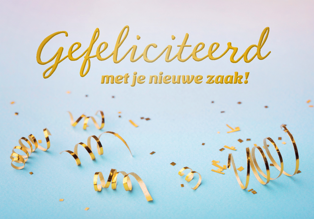 Nom: DUBBELKAART "GEFELICITEERD MET JE NIEUWE ZAAK!"/OMSLAG