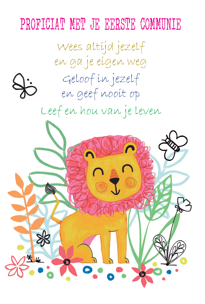Nom: DUBBELKAART "PROFICIAT MET JE EERSTE COMMUNIE"/OMSLAG