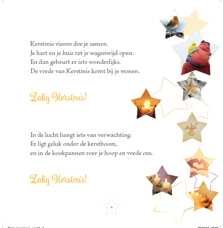Infos: Tel je zegeningenAuteur: Kolet JanssenEen boekje vol warmhartige kerst- en nieuwjaarsteksten.